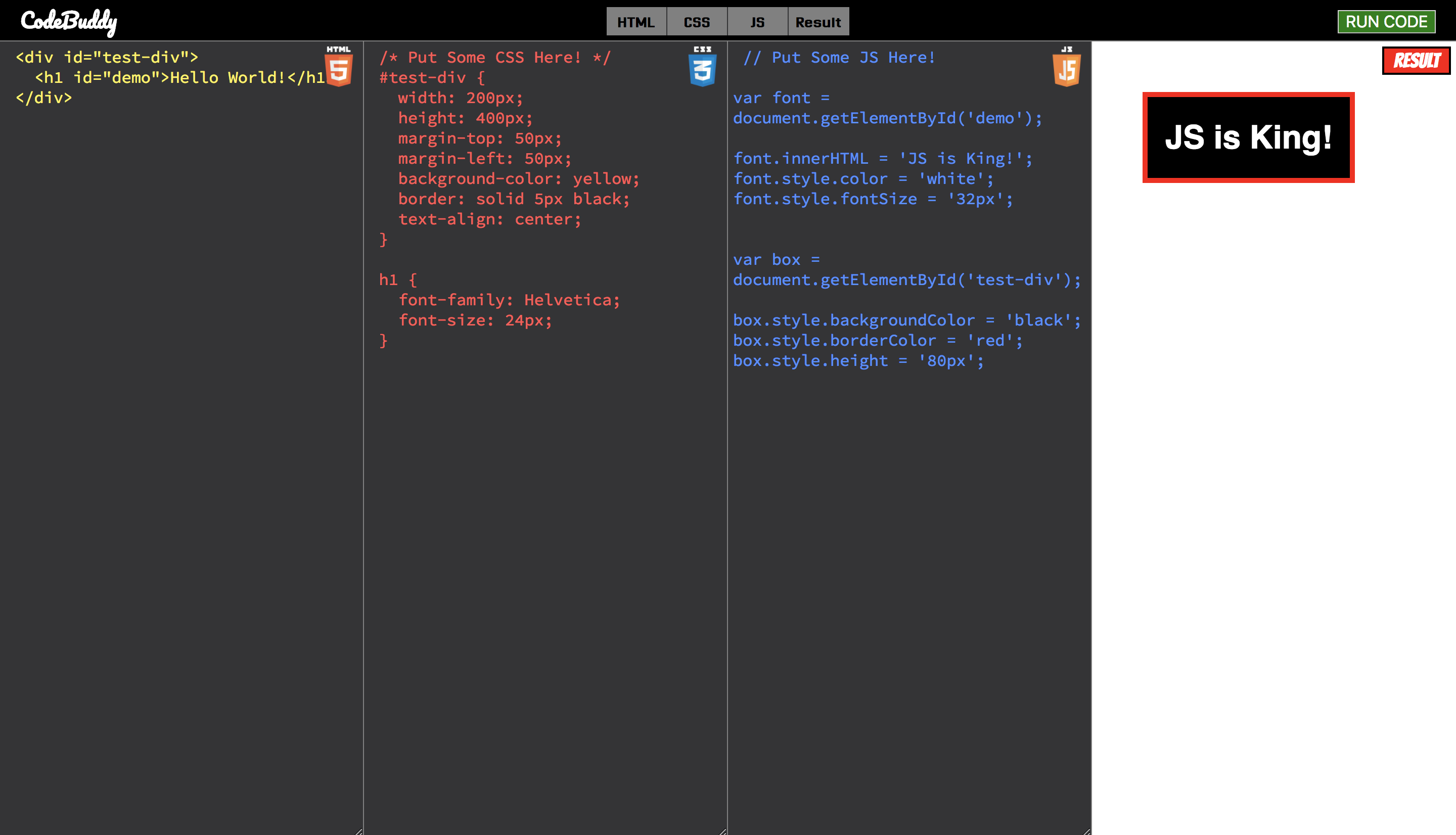 For this project I made my own version of REPL web applications like "CodePen" or "JS Bin". I used HTML, CSS, JavaScript, and jQuery to build out the design and functionality of the app. I had a lot of fun tinkering with several design aspects of the site including things like the different code colors, container badges, background color, logo, and more. This is a great web application that new developers can easily use to practice some of their new coding skills.