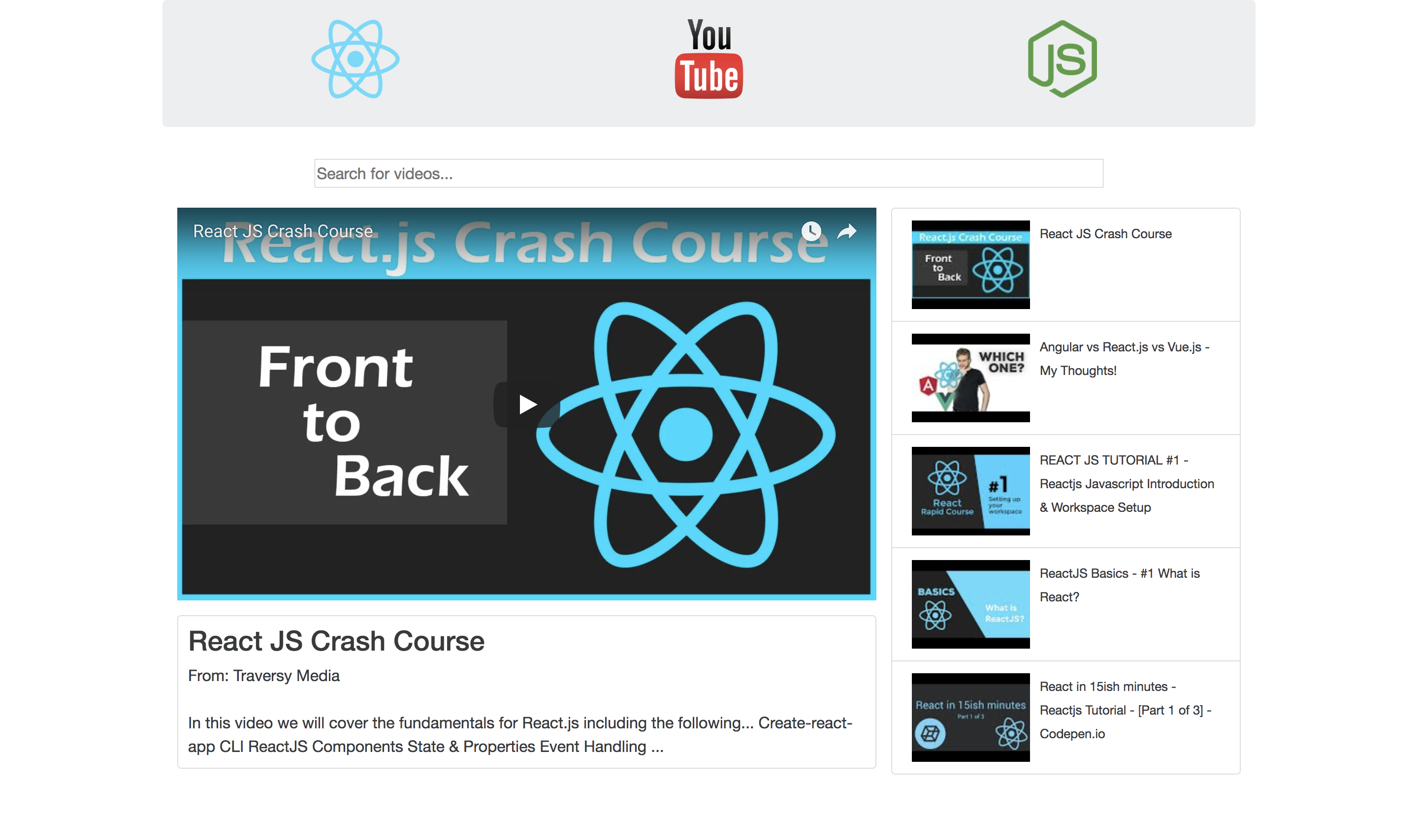 This is a video player app where the user can search for a video topic and get the relevant results they would like to watch. It was coded with HTML, CSS, and ES6 JavaScript, as well as using technologies, frameworks, and libraries like Node, React, Youtube API, and Bootstrap. Some of the Node packages I've used in this app are express, lodash, react, react-dom, and youtube-api-search.